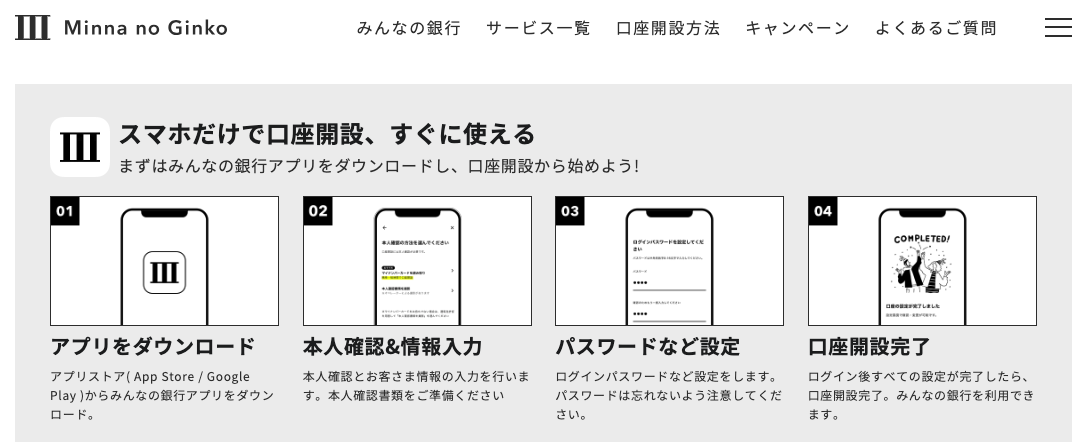 サブ口座として、スマホ完結でミニマルに使える「みんなの銀行」は相性が良い